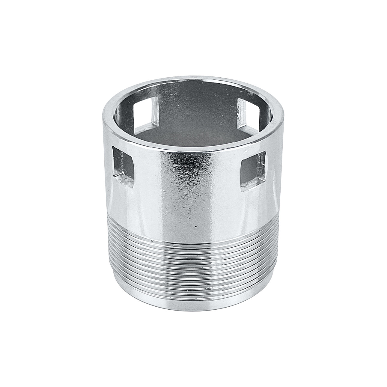 Krümmermutter in verchromter Ausführung vom Hersteller Duells, zur Befestigung des Auspuffkrümmers am Zylinder des Motorrads.