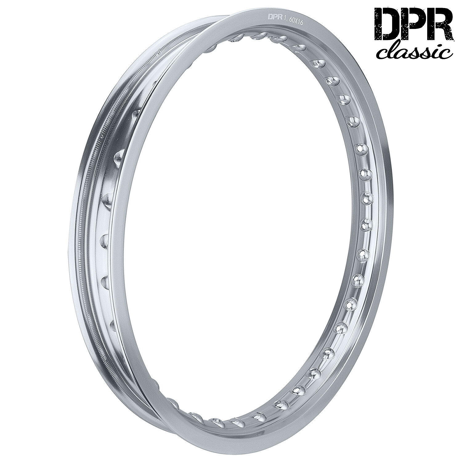 Aluminiumfelge in Naturfinish, passend für Motorräder mit 16-Zoll-Rädern. Die Felge hat 36 Speichenlöcher und wird von DPR hergestellt.