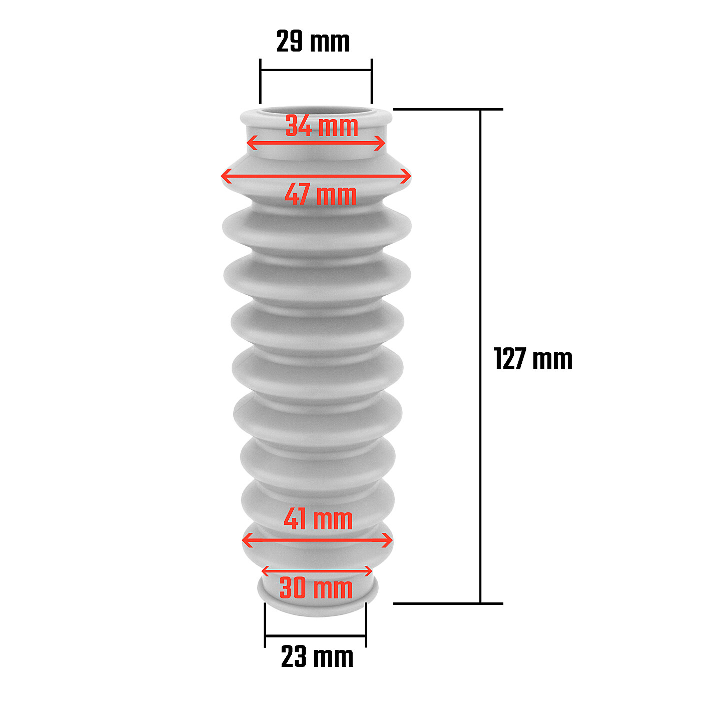 Graue Gummimanschette zum Schutz der Gleitflächen der vorderen Teleskopgabeln vor Schmutz und Staub.